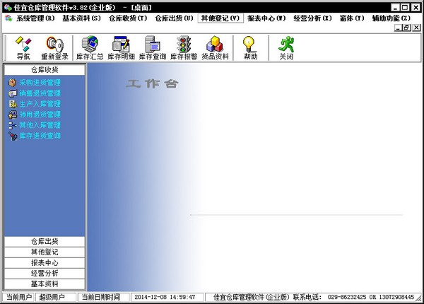佳宜以库存业务为基础,整个系统一体化设计,功能流畅,操作方便,界面美观友好,是您库存管理的好帮手。佳宜仓库管理软件适用于中小型企业、商场、生产厂等物资供销、商品流通部门进行物资(商品)的采购、销售、库存的管理。