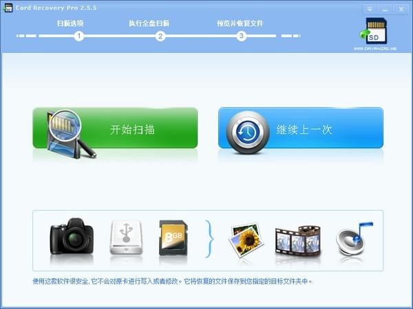 CardRecoveryPro是一款操作的内存卡恢复软件。它可以有效恢复基本所有内存卡中因误删、损坏和格式化而被删除或丢失的照片、音频、视频和其它的一些多媒体文件。 使用CardRecoveryPro 很安全无风险. 这款软件在内存卡上只进行 只读 操作。它既不会移动和删除卡上的数据,也不会将其修改来防止进一步损坏或者覆盖。它将原卡上的图片、音频、视频和多媒体文件恢复,并将其储存在您指定的位置上。 只需要几步操作。 过程简单! 效果惊人!