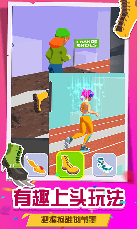 新奇跑酷玩法,根据道路换鞋向前冲
