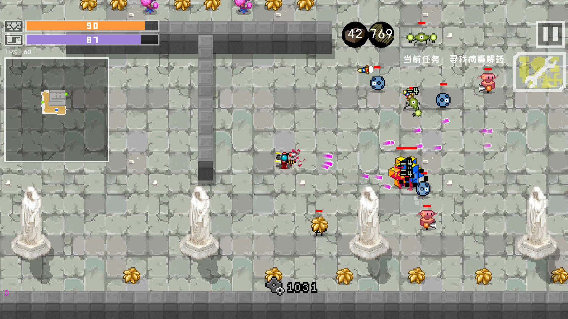 游戏使用双摇杆设计,左摇杆控制人物移动,右摇杆控制射击和射击角度。