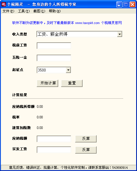 税精灵,专业2018-2019,采用最新个人所得税税率表、起征点、速算扣除数、个人所得税计算方法,包括工资、年终奖个税计算器等,税后反推,免费下载。