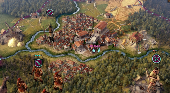 城市形成块块相连的领域,包含都会中心与乡间偏远地区。每个改良设施都占据一个格位,包括奇观和都会建筑,像是神龛、场与屯驻地。领域的扩张将依玩家在地图上建造改良设施与训练专家的地点决定。