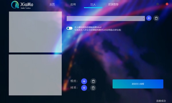 注入:注入模组时自动删除网易Mod,勾选后注入时会自动删除网易Mod【花雨庭必须勾选】