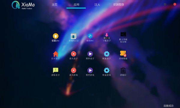 XiaMo Toolbox(网易MOD注入工具)是由精易论坛大佬分享提供的一款游戏工具,它是针对开发,轻松注入游戏MOD、配置方案,拥有修复Jre、修复Hosts、修改MAC、下载盒子、打开强关盒子等功能!欢迎大家下载体验。