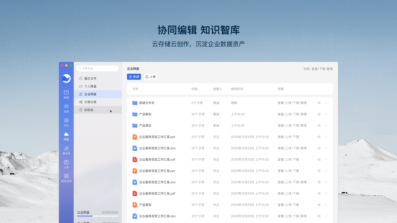 云盘支持多端协同,多格式文件的高速上传、下载及预览,打造触手可及的知识智库,移动办公更轻松。