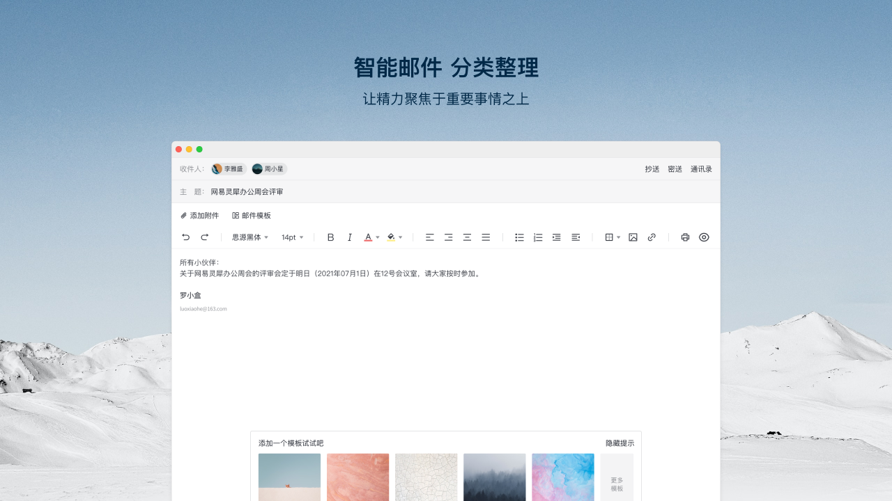 邮件标签、快捷回复等功能,帮助智能管理邮件,邮箱多重安全保障让邮件收发稳定安心。