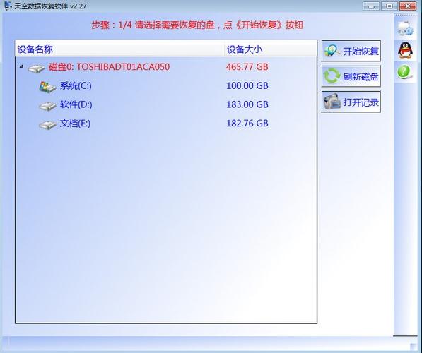 1.打开软件后,选择需要恢复的盘,点《开始恢复》