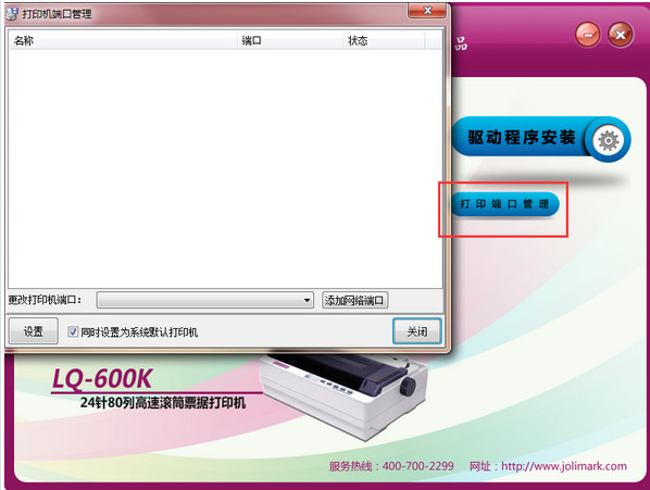 2、点击盘【打印端口管理】按钮,进行打印机端口设置