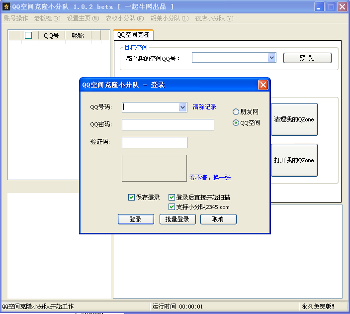 QQ空间克隆小分队,可以快速将别人漂亮的QQ空间装扮克隆到自己的空间,无需开通空间黄钻,直接输入QQ号码,可以瞬间将别人漂亮的QQ空间装扮复制到自己的空间;本软件一键克隆空间,拥有强大的兼容性;欢迎下载使用。