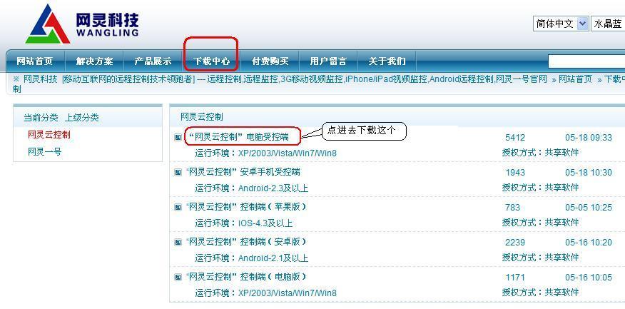 以电脑控制端为例,先下载安装“网灵云控制”的电脑版控制端,