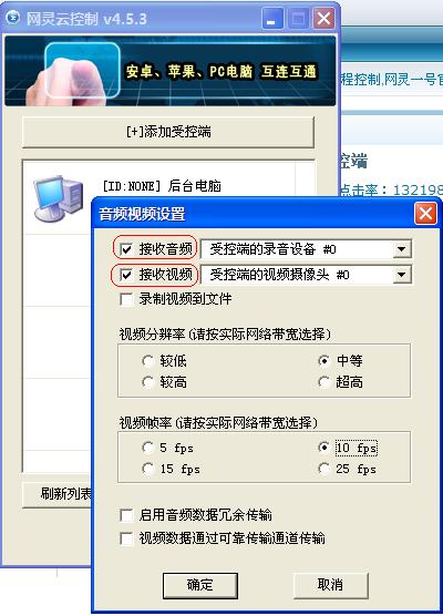 对于音视频参数,是可以调整设置的。在前面主列表界面,单击受控端,从弹出的菜单中选择“设置音视频参数” ,