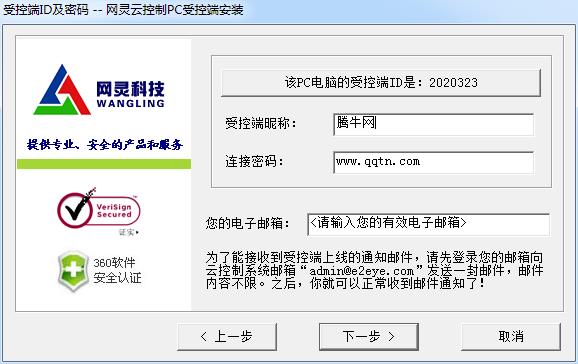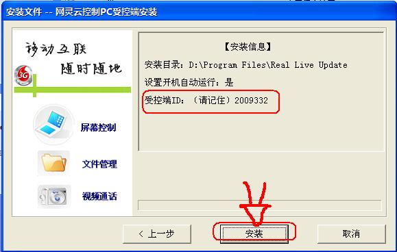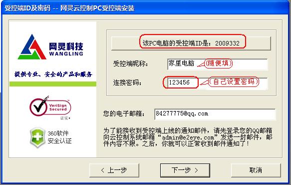 开始运行安装文件,保证此时受控电脑是联网的,你会看到自动生成的受控端ID号,而密码是自己设置的,