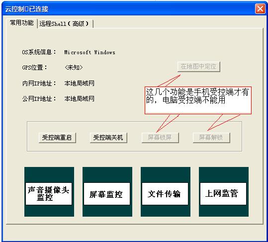 (2)本受控端程序与电脑版控制端程序不能安装在同一台电脑上,否则不能正常工作。