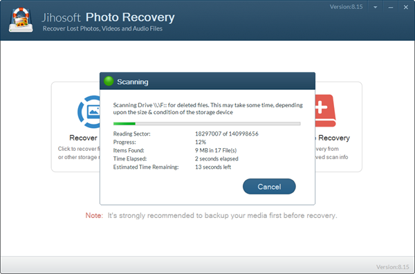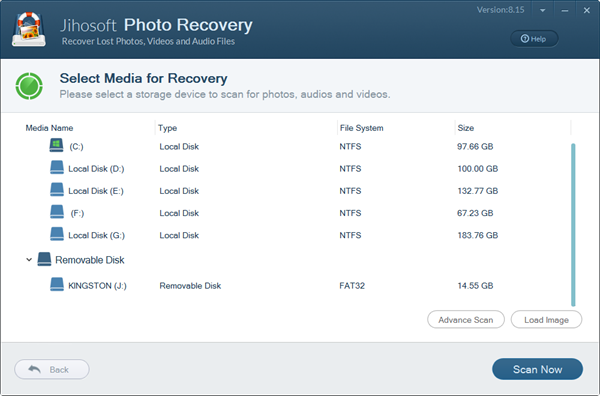 不小心删除了照片,不要恐慌,让Jihosoft照片恢复软件帮助你。这是一个非常的使用照片恢复工具来恢复丢失,删除,格式化或损坏的照片,视频和音乐文件从个人电脑的硬盘驱动器,外部硬盘驱动器,USB驱动器,SD卡,SDHC,microSD卡,CF卡, xD记忆卡,数码相机,以及更多的存储设备。该软件支持所有类型的图像,视频和音频格式,如JPG,PNG,BMP,GIF,AVI,MP4,MOV,3GP,MP3,WAV等。