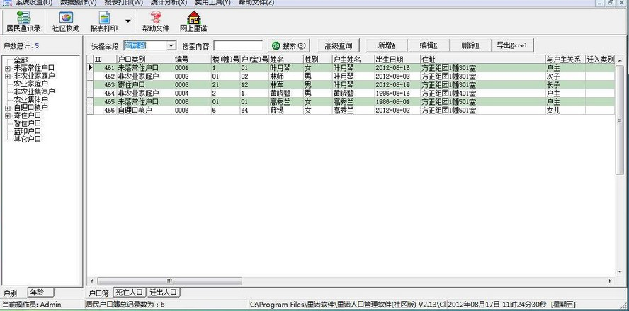 一款对常住人口管理,暂住人口管理,流动人口管理,户籍人口管理与统计的管理软件。