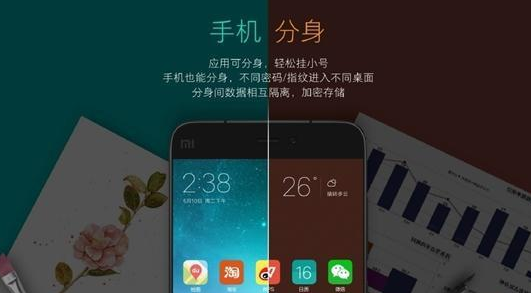 手机应用双开的功能,在很多主流手机中已经很常见,但是MIUI8的手机分身功能可以通过不同的密码与指纹进入不同的手机空间,让手机存在一个只有用户知道的绝密地带,想怎分就怎么分,让你的小秘密不显山不露水!