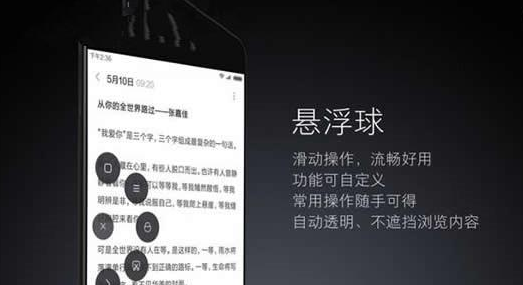 这个功能在iphone用户看来已经没有什么新鲜的了,但是安卓阵营中MIUI的悬浮球可能是最好用的,悬浮球的目的是为了方便用户能够快速直接使用自己需要的功能,在按键不灵的时候也可以进行手机操作。悬浮球的功能用户可以自定义,算是操作体验上的提升。