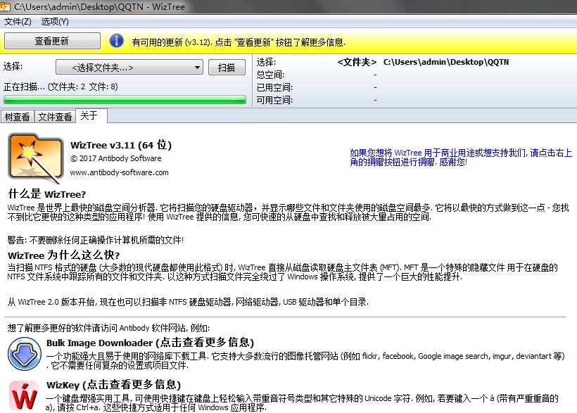 WizTree是一款用来管理和分析硬盘文件的软件。如果你在烦恼在硬盘中有哪些大文件占用空间,自己却不知道,你可以用WizTree来进行扫描。WizTree可以快速查找硬盘中大文件/文件夹,具有复制、删除等功能,仅支持NTFS格式分区,因为它直接读取硬盘的MFT文件,整个扫描过程会完全绕过操作系统,所以这个小软件的扫描速度和同类工具相比,是非常快的。