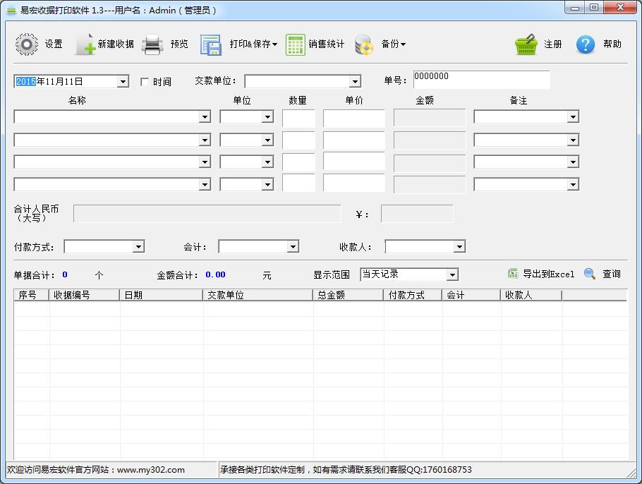 易宏是一款专门的收款收据打印系统,这款软件广泛用于各种店铺和单位,帮助你为客户开具收据使用,软件功能强大多样,可设置各种规格的打印纸张,并能自定义纸张大小,可设置打印模版(自定义标题、备注、加印章等),可调整打印边距,表格行高,有需要的朋友可以免费下载使用。
