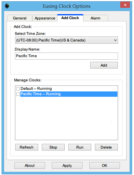 2、打开设置页面,在 「Add Clock」 标签页中可以增加时钟,你可以根据不同的时区来建立不同的时钟