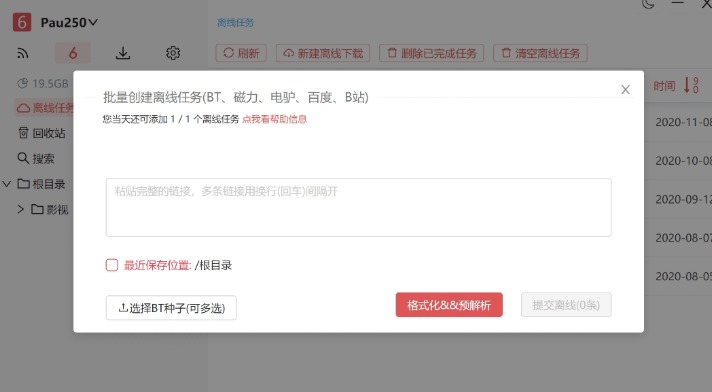 [√]支持批量创建离线任务,支持批量选择种子文件离线+