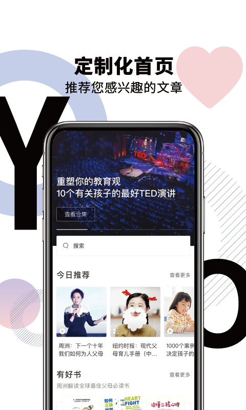 按年龄和兴趣个性化推荐优质文章、书籍解读、课程和线下机构资源。