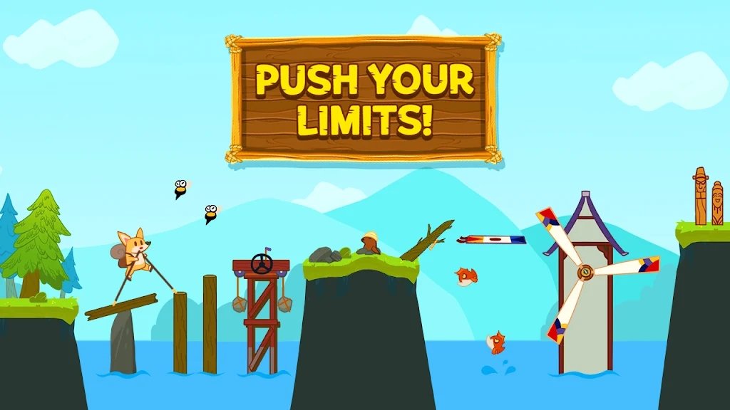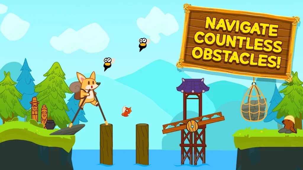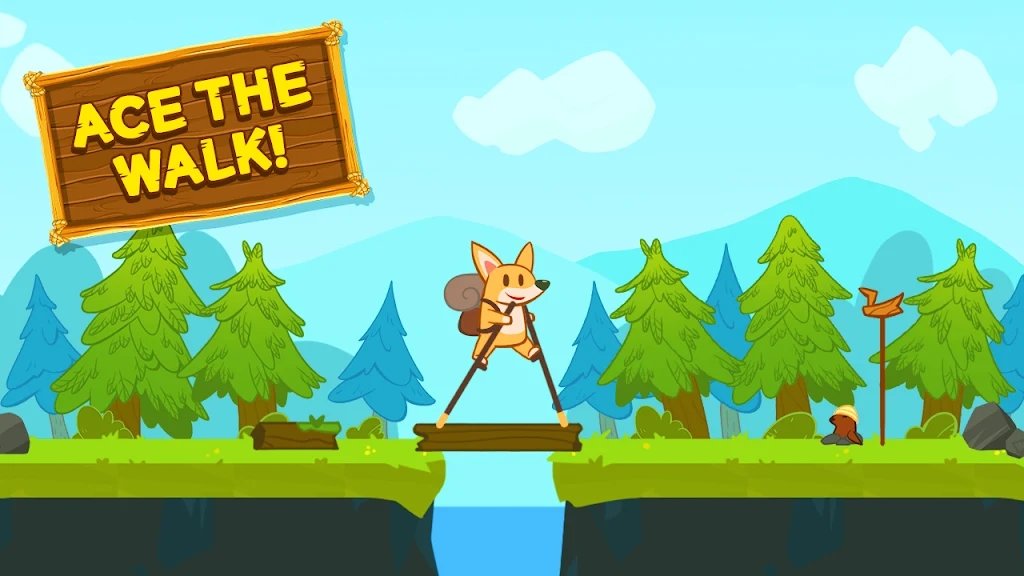 3、让可爱的小狗着高跷行走闯关,保持是你通关的诀窍,虽然一左一右的行走听起来很简单。
