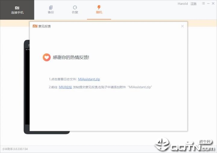 安装完成后开启小米助手(MiPhoneAssistant),登录小米账号