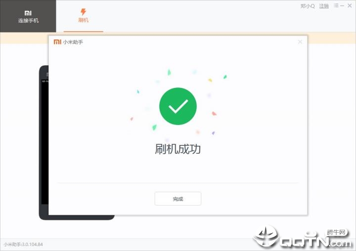 接下来小米助手将会进行刷机包下载和刷机操作,在此过程中切勿断开手机连接。出现刷机成功提示页面就刷机成功啦,等待手机自动重启成功后,就可以体验到最新版MIUI的新功能了,很激动有木有!