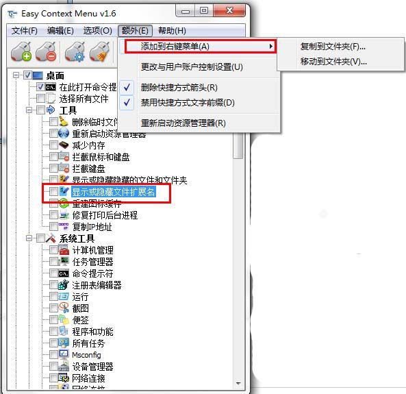 1、我们选择一个自己要用的工具==点击额外==添加到右键菜单