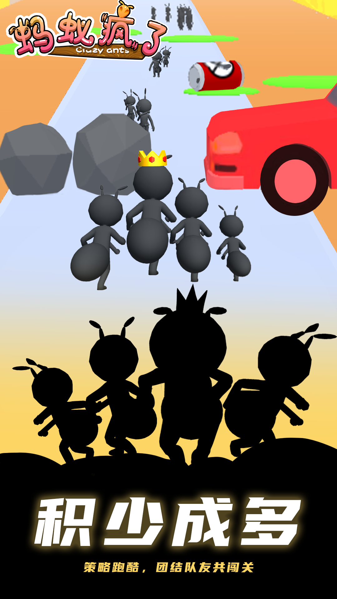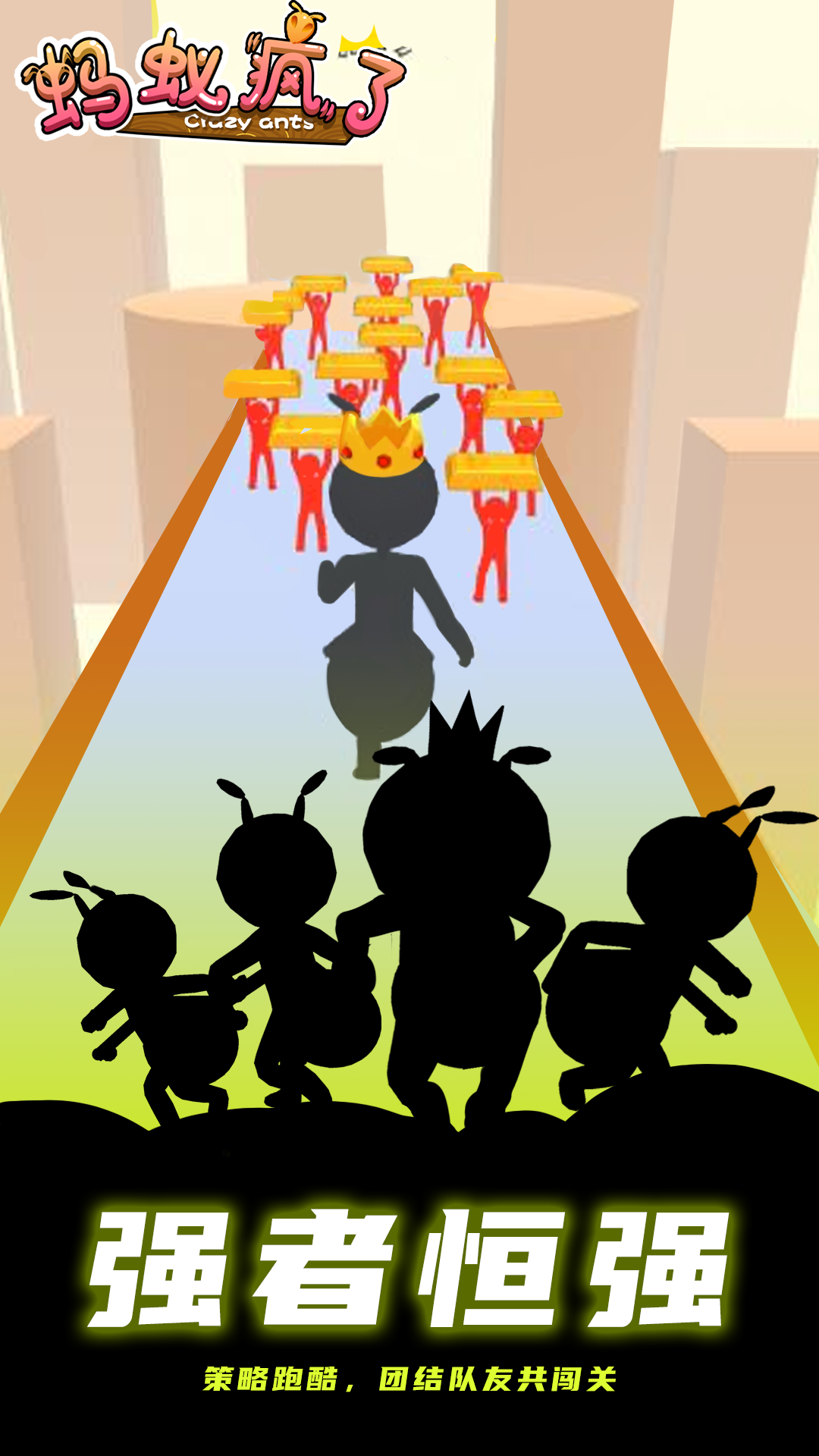 休闲跑酷闯关游戏,化身为蚂蚁士兵进入赛道跑酷!左右滑动躲避障碍和陷阱,拾取蜂蜜和金币,招募更多蚂蚁和你一起奔跑,到达终点击败那个凶恶的boss建造你的蚂蚁军团!