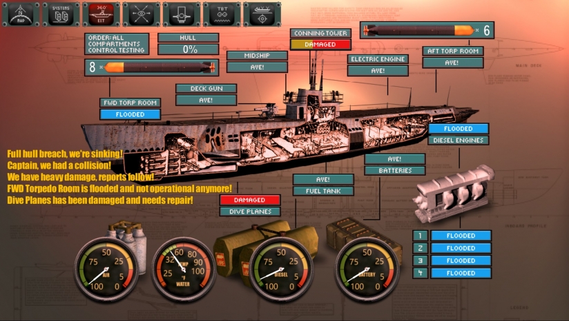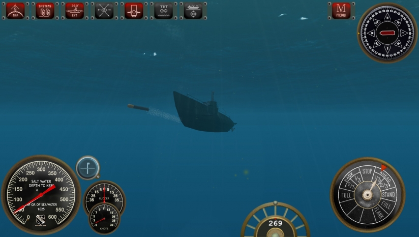 1、玩家利用鱼雷和机枪即可进行攻击,而在画面上玩家可以看到许许多多仪表与按钮,利用这些玩家即可对潜艇进行控制。