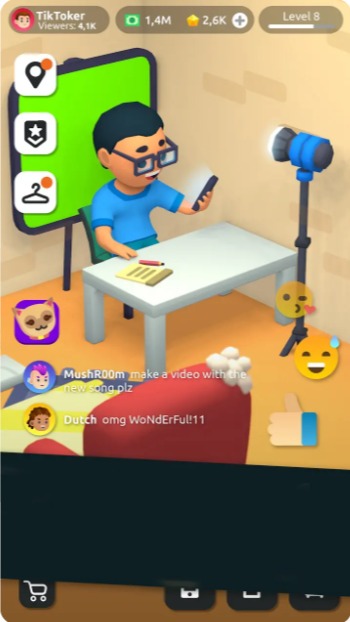 抖抖更健康游戏,模拟做一名真实的抖友,一个人进行每一场直播,从新手博主开始,慢慢成为最具人气的网红,你会有很多的追随者,也要保证最好质量最高层次的作品给大家。
