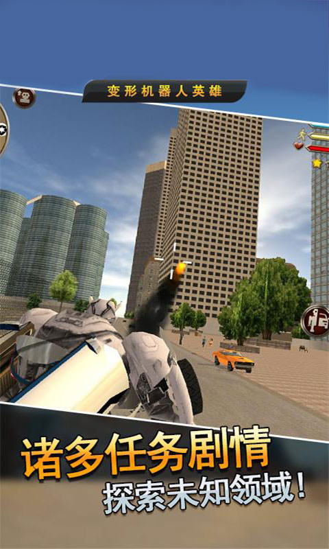 一款超级好玩的游戏。邪恶的机器人在危害这座城市的和平!身为变形金刚汽车人的你要挺身而出,利用自己优秀的武器和变形能力来打败他们守护城市和平!现在,做好准备,和变形机器人一起开启冒险吧!