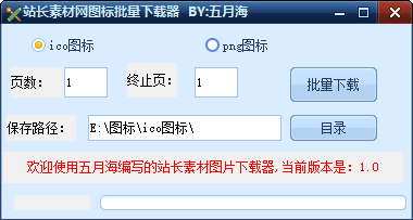 站长素材网图标批量下载器是一款非常好用的图片批量,只需选择图标格式,设置需要下载的页数和保存路径,就能够一键帮助用下载锁需要的图片内容,使用起来非常方便,有需要的用户赶快来下载吧!