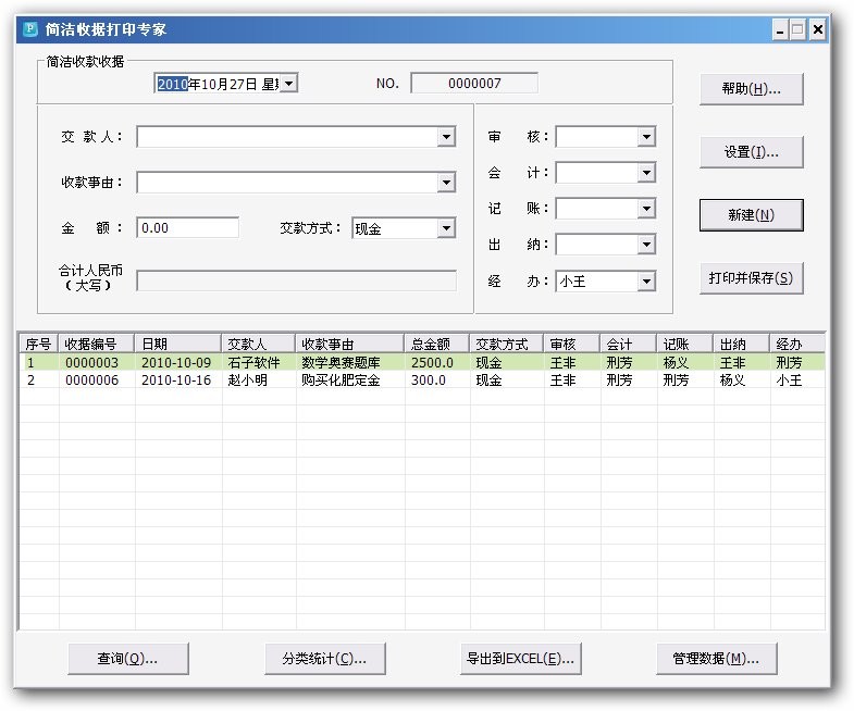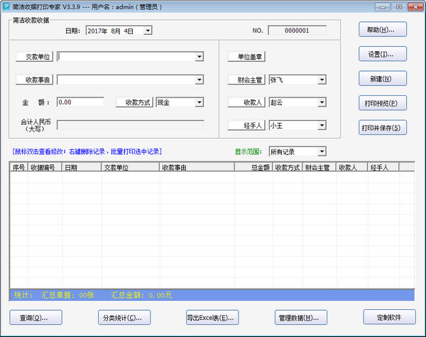 3、可对收据进行保存、修改、删除、查询统计等管理操作