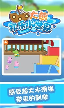 2、在游戏中大熊一家去游乐场玩耍,这里的游乐场都是水。