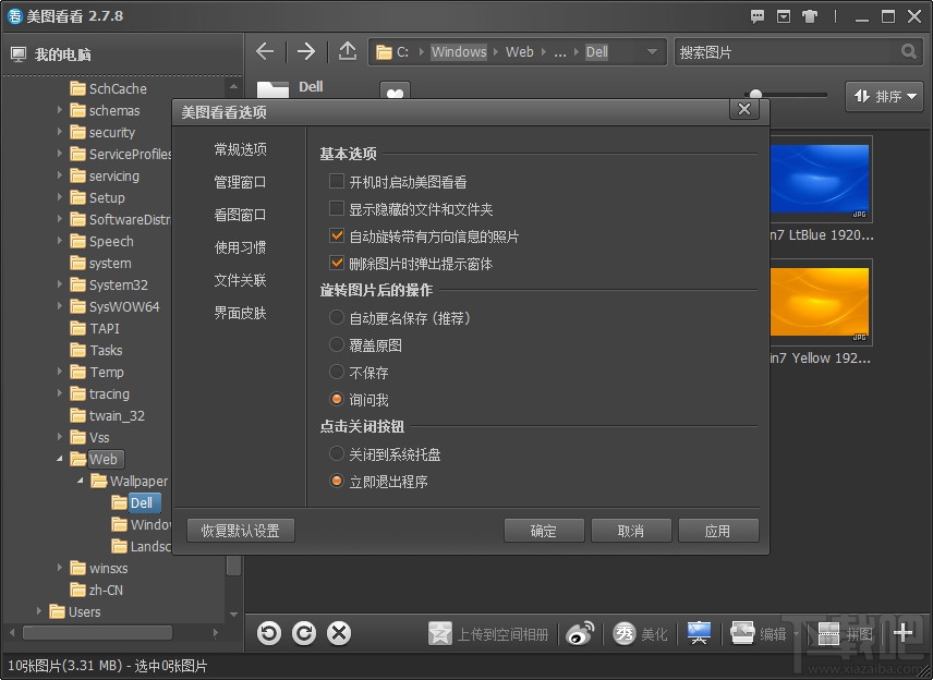 点击管理界面右上角图标主菜单->工具->选项(或Alt+O打开设置),或在看图窗口直接按Alt+O打开设置。