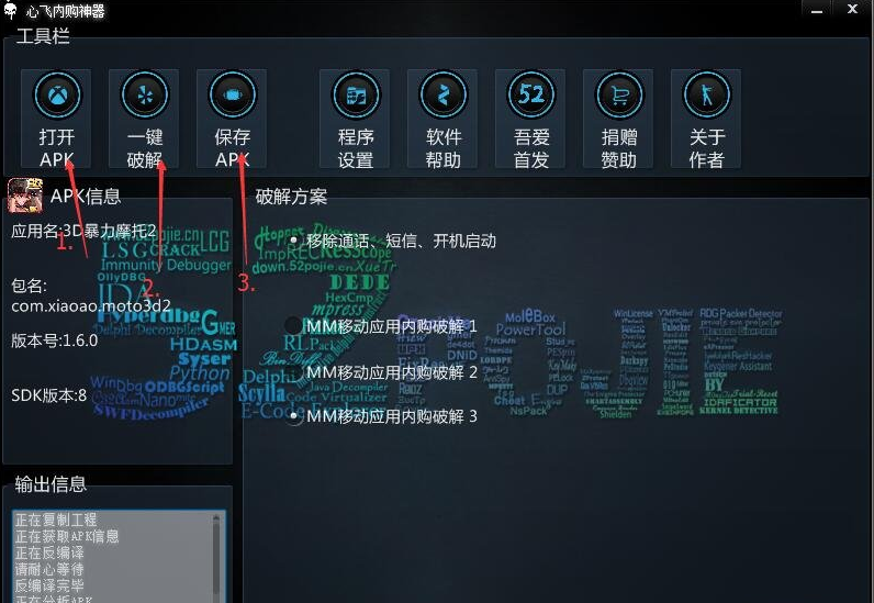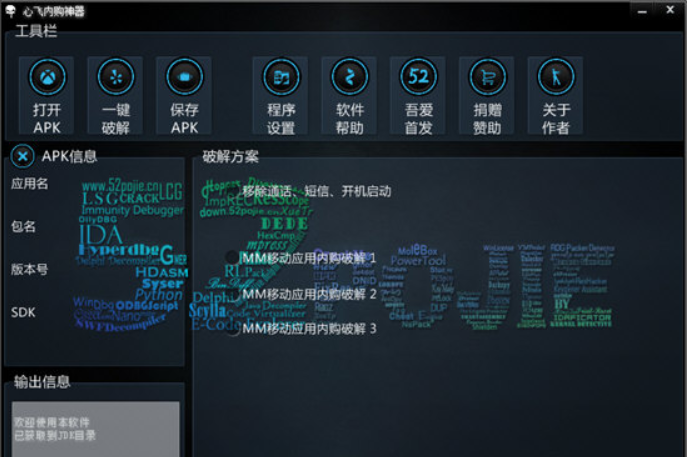 打开软件有apk文件包详细的信息,包括文件名、版本号等,右侧还有破解方案。