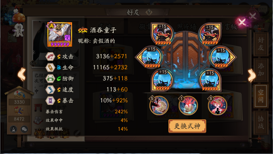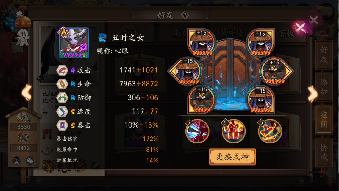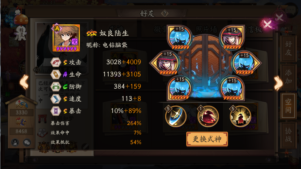 6)整体的速度在不打乱排序的情况下,都可以尽量增加。三百人一起面对速度相同的妖怪,若是整体速度领先,八分钟左右的战斗时间,很有可能比别人整体多出手半个到一个回合!
