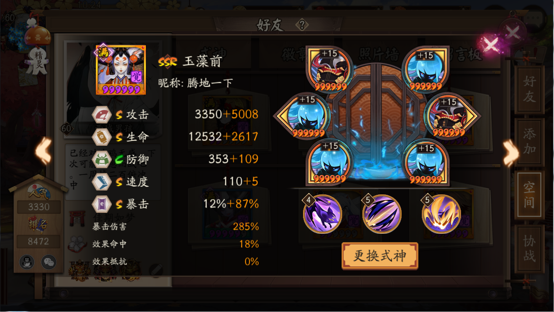 总结:阴阳师玉藻前是个辅助型的ssr式神。