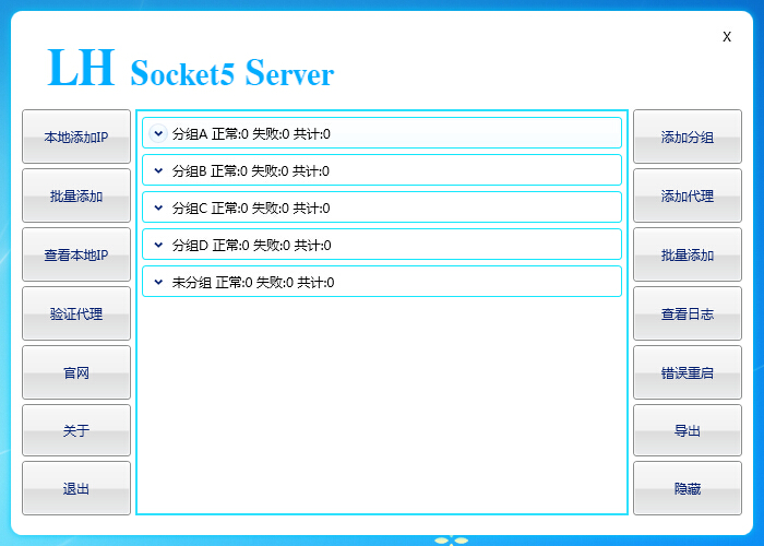 蓝恒Socket5服务器是一款用于在Windows系统下架设Socket5代理的服务器程序,可对客户端提供各类相关网络服。Socket5代理为一种互谅网类似于Http代理的一种高效稳定的代理,可用户代理各类相关网络服务。程序支持账户批量生成,批量管理,可完全根据您的设定设置用户代理的可用是,支持IP与端口的完全自定等。