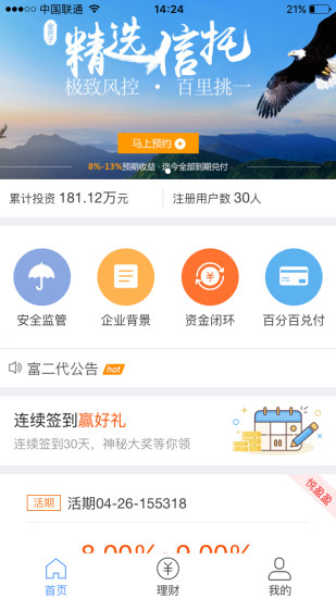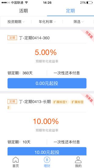 100元起即可投资任意理财产品,50倍银行活期存款收益。