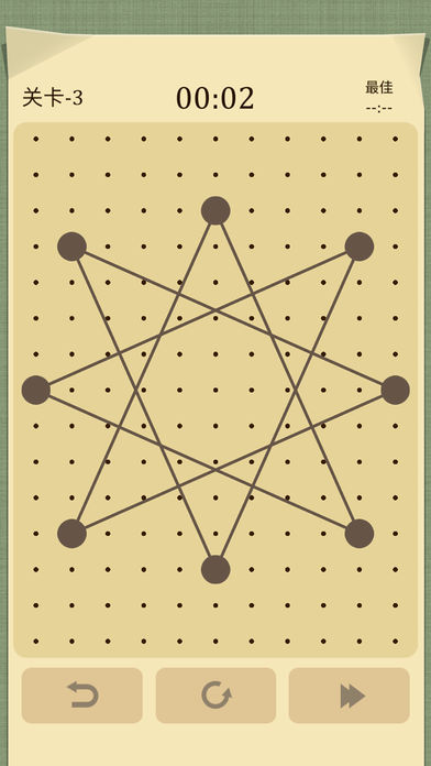 游戏很容易上手,拖动线段顶点使矩阵网格中的所有线段互不交叉.游戏过程中可以提高你的思维能力,锻炼你的大脑,还能培养耐心!