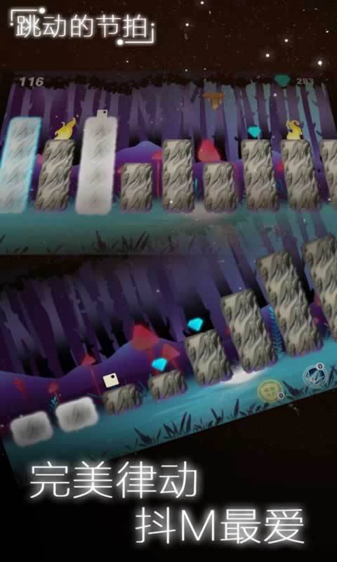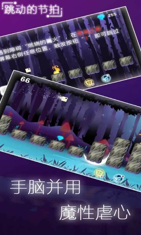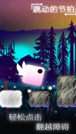 2、玩家只需要只需轻点屏幕即可控制白色方块移动跳跃,躲避障碍物;