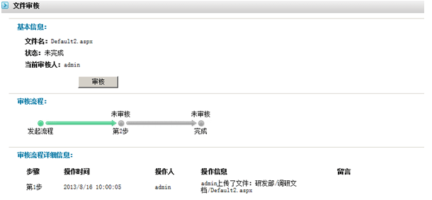 支持文件上传、修改、下载、预览审核,当系统启动审核功能后,文档需要审核才能使用