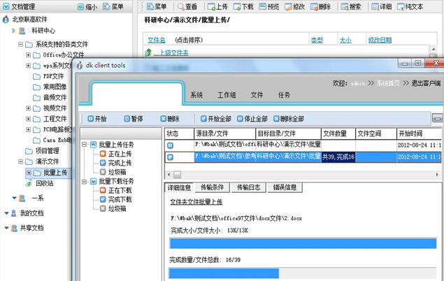 系统提供批量文档传输工具,可以一次批量导入文件,也可定时导入文件。