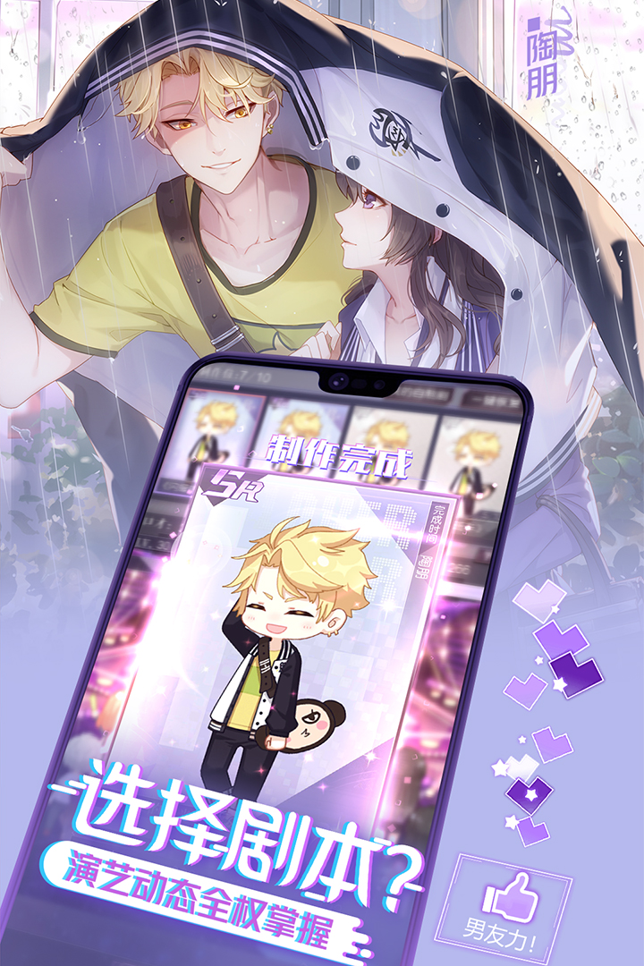这是一款还原真实明星成长道路的,不同于以往的偶像经纪人游戏,更多的傻白甜人设,被动的恋爱行动策略,在这里你一手挖掘和培养明星,像御姐一样照顾他们,收获可爱的小奶狗,成就自己的娱乐帝国,游戏还邀请著名声优倾情献声。