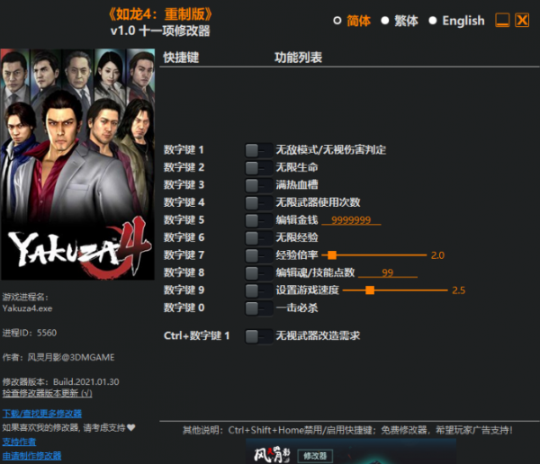 如龙4重制版十一项修改器是为喜欢该游戏的玩家准备的,能够帮助玩家对游戏中的各项属性数值进行修改,提供无敌无限金钱等多项功能,给你带来更加完美的游戏体验,感兴趣的玩家赶快来下载吧!