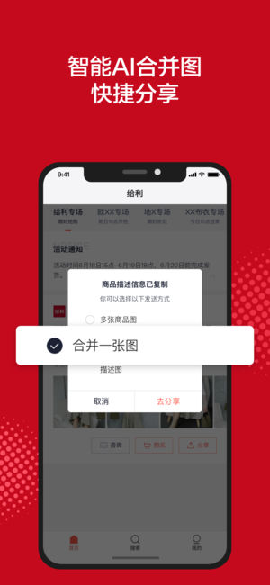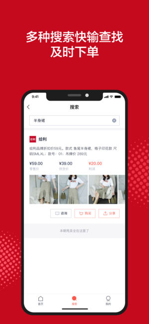 经销商可以一键分享到微信等渠道,为广大经销代理提供一站式品牌播货平台,用给利,真给力。